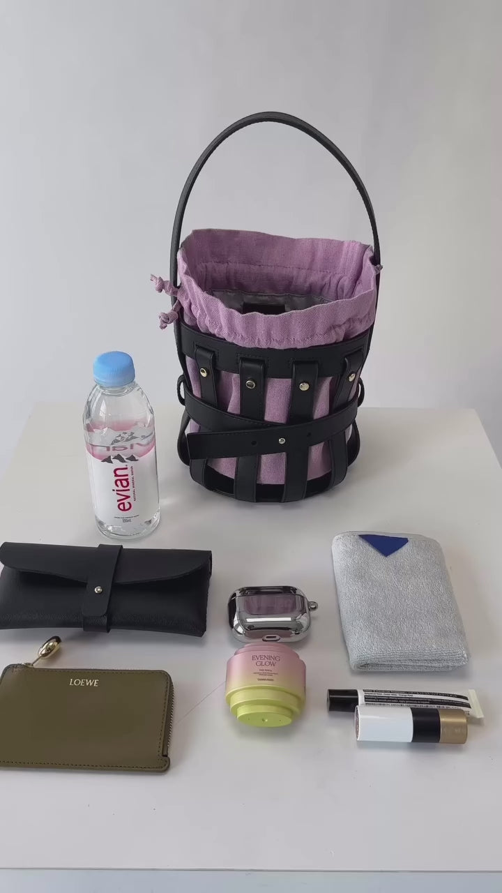取り外し可能なインナー巾着が付属しており、他の巾着や柄のあるスカーフを組み合わせることで、異なるスタイルを楽しめます。
